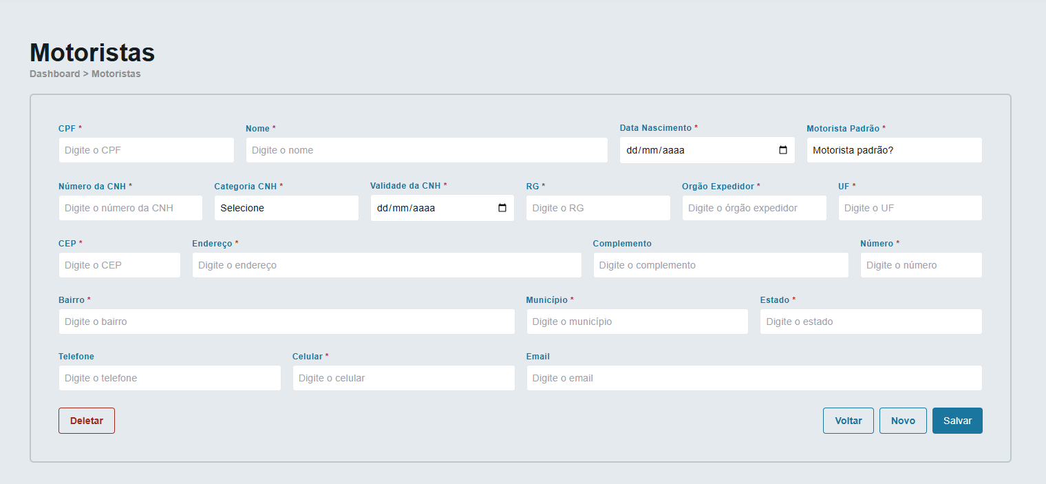 Mantenha os dados dos motoristas sempre atualizados, incluindo CNH, contatos e informações pessoais.